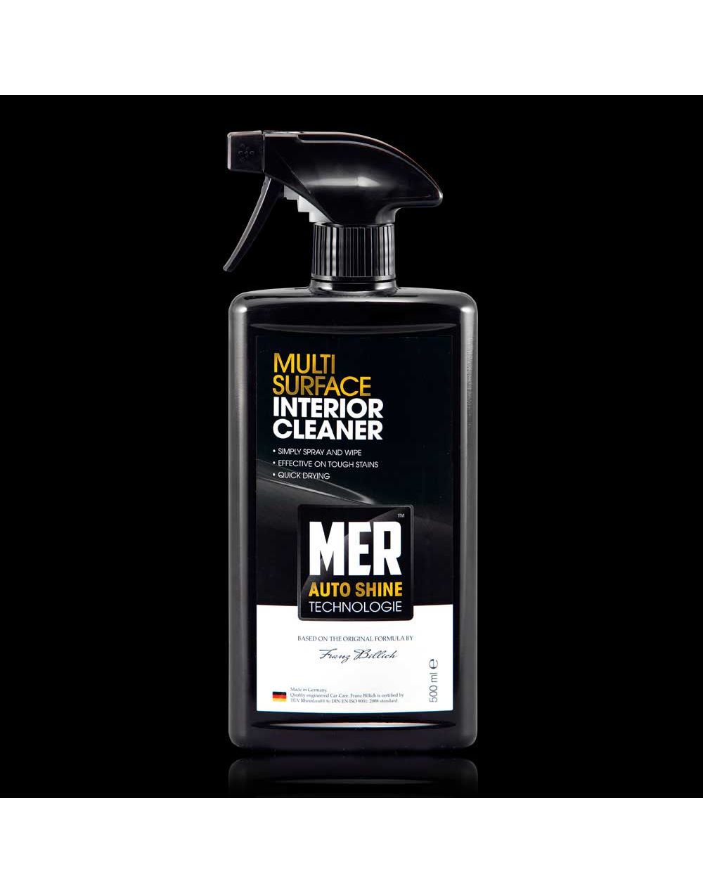 MER ‘Multi-Surface Interior Cleaner’ has an advanced, quick drying and de-odourising citrus fragrance formulation, using MER’s ‘Auto Shine Technologie’ to provide a deep clean and remove annoying stains including grease and chocolate.