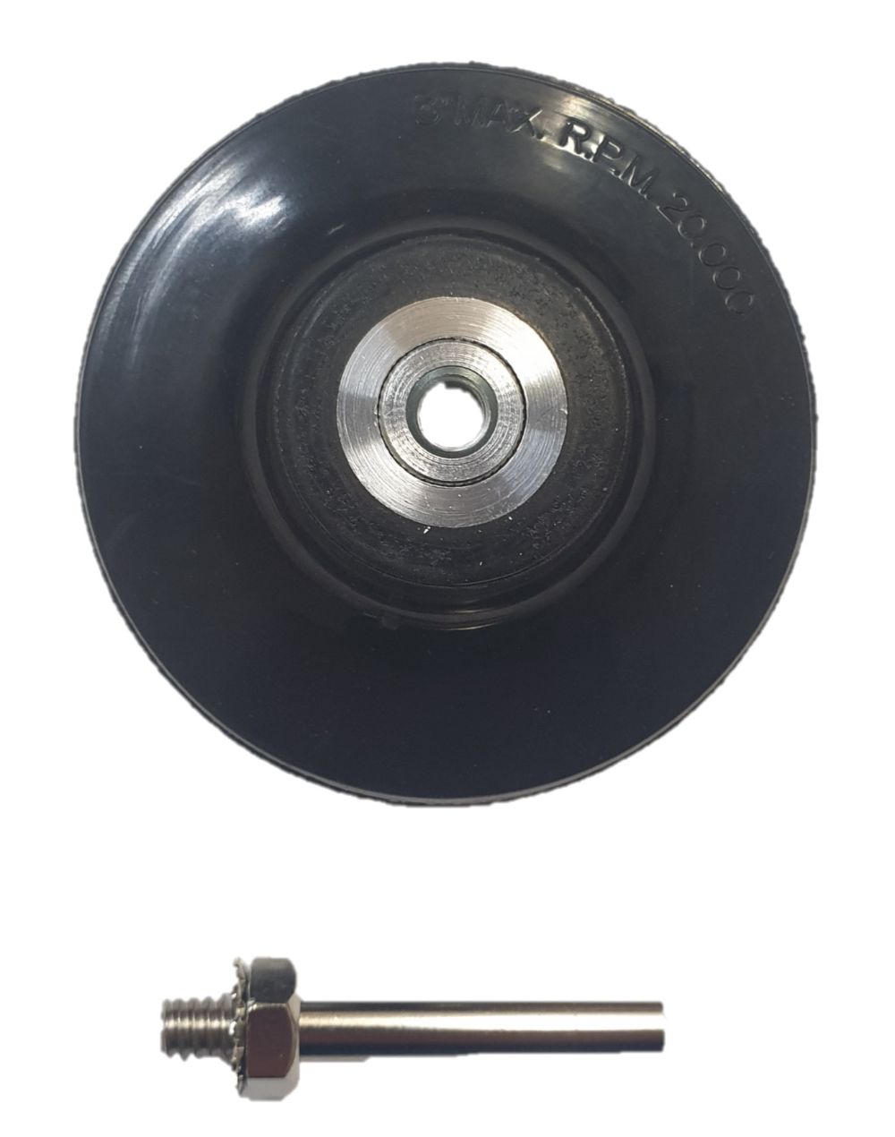 Backing pad for 76mm discs with quick-action chuck system Roloc style. The quick change system allows a fast and easy tool change without sticking and without slipping. • Medium hardness
