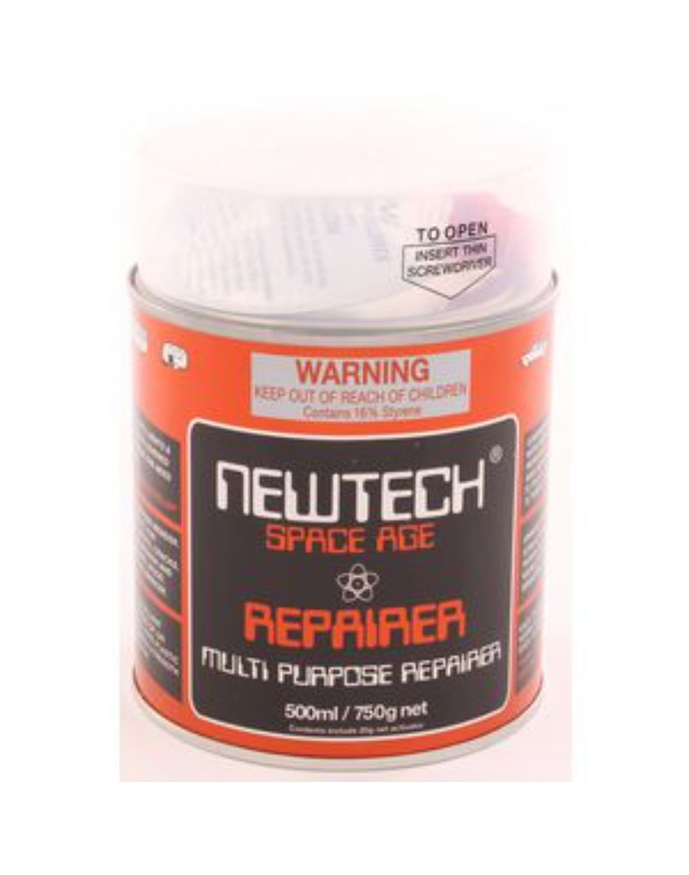 NEWTECH® REPAIRER is a polyester-based glass-fibre paste and hardener. The paste and hardener are supplied separately, and once mixed it becomes a user-friendly filler which is ideal to repair damaged alloy, metal, masonry, stone, aluminium and fibreglass parts real fast. It also contains rust inhibitor, aluminium and fibreglass strands which provide excellent bridging properties and reduce sagging for covering those large holes. No need to weld-in patches.The cured colour is a dark grey.
